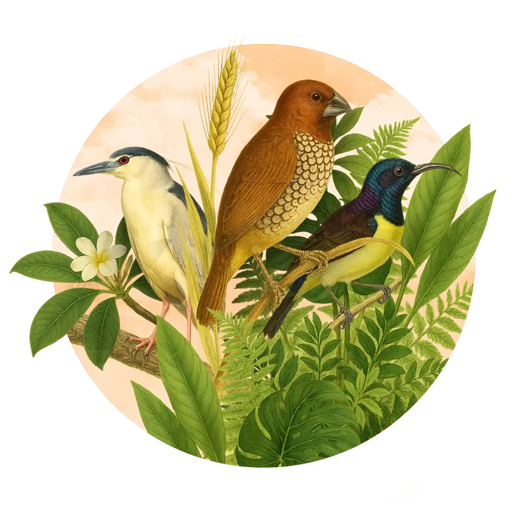 ecosystem of trees, plants, birds and butterflies. Here, every